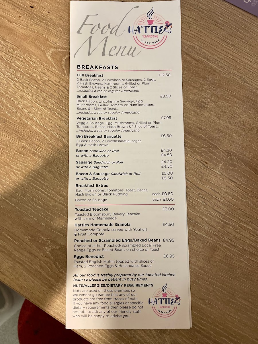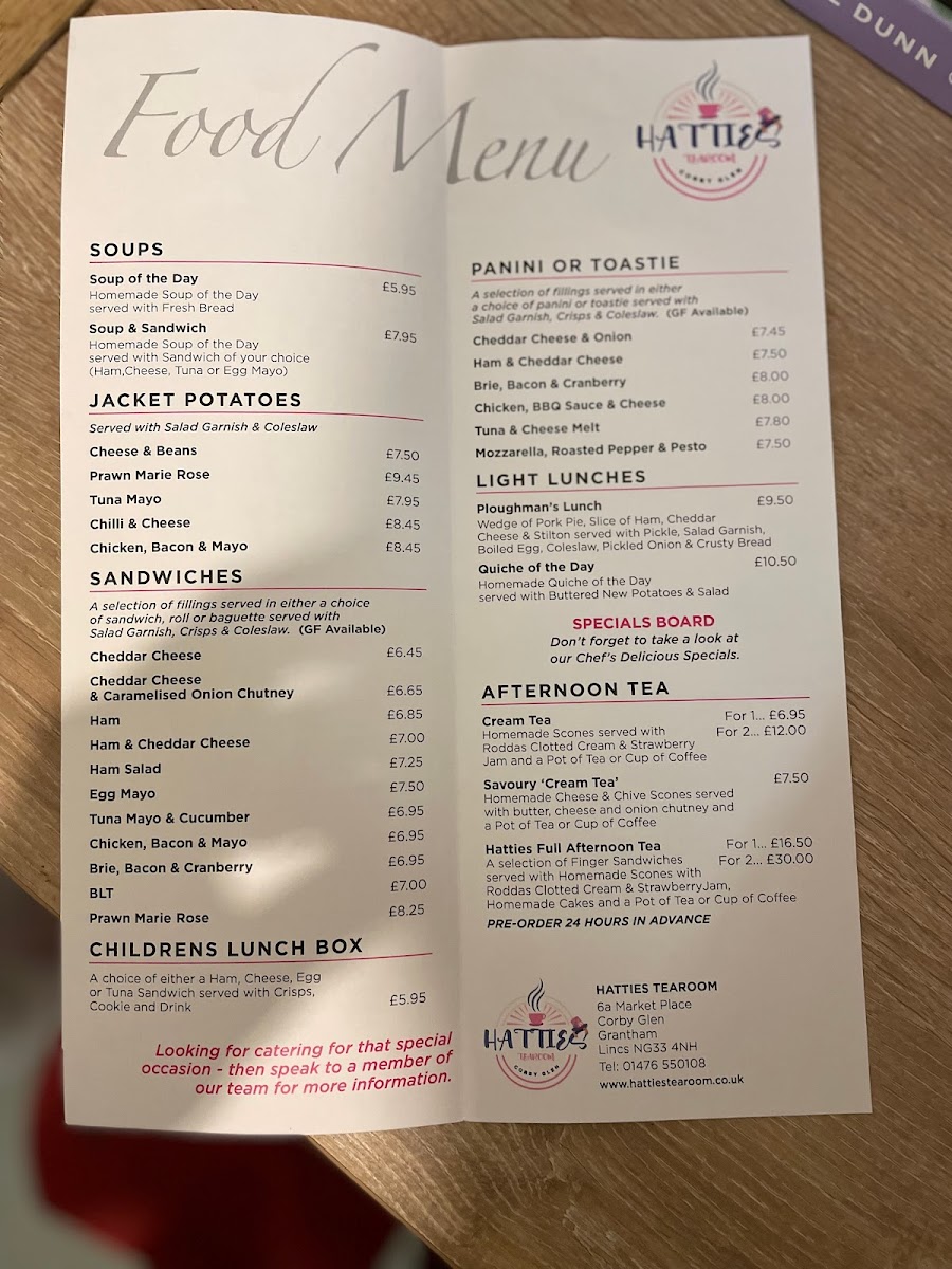 Hatties Tearoom Menu